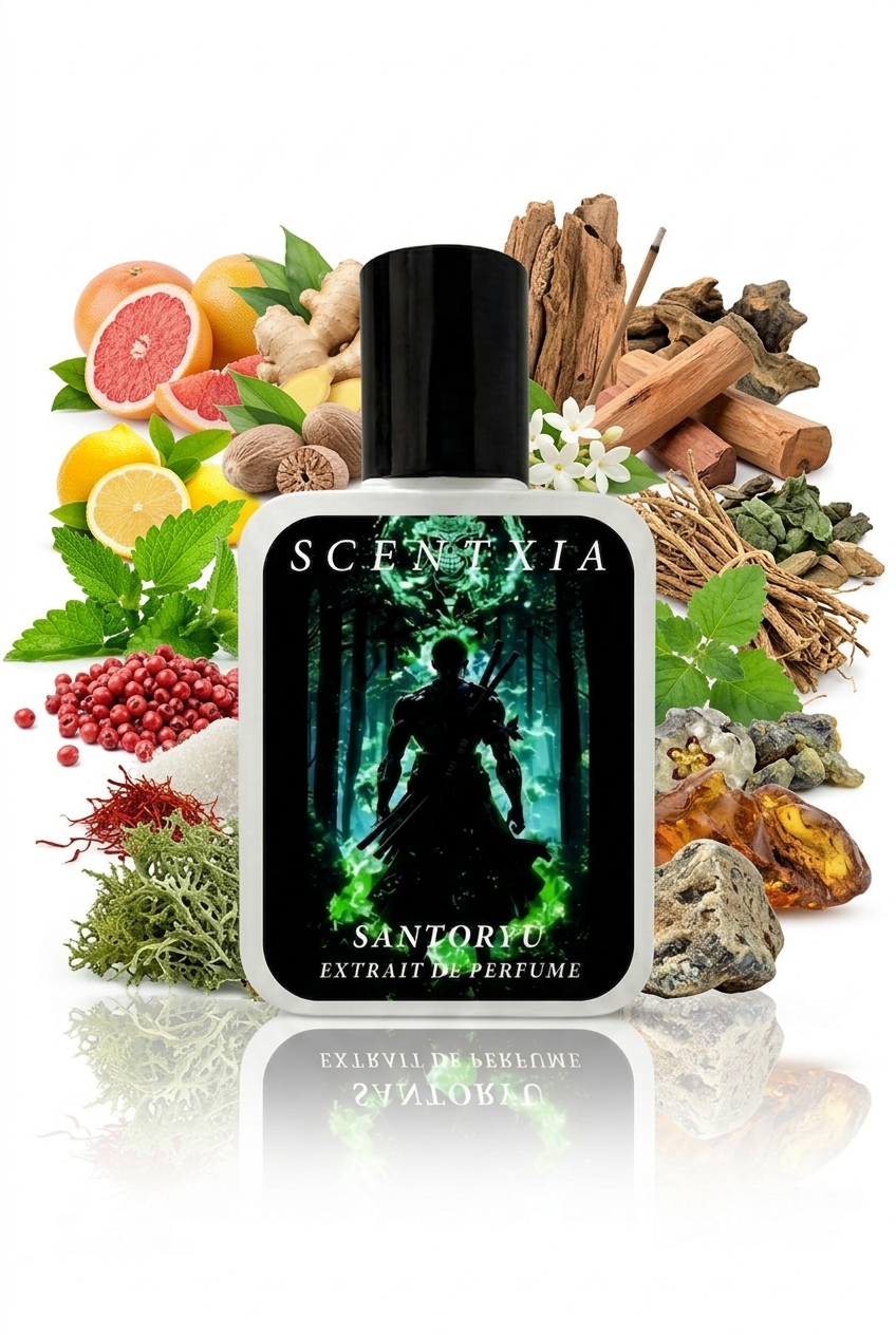 Master your presence with Santoryu, a powerful anime inspired perfume by Scentxia crafted for those who move with precision, discipline, and strength. This fragrance blends freshness, spice, and deep woody richness into a bold and refined scent.